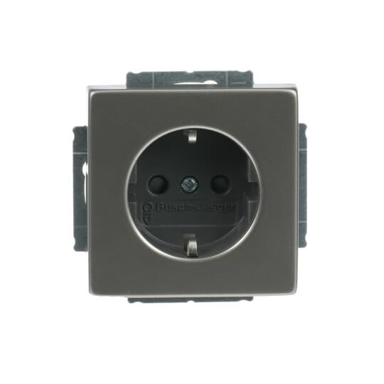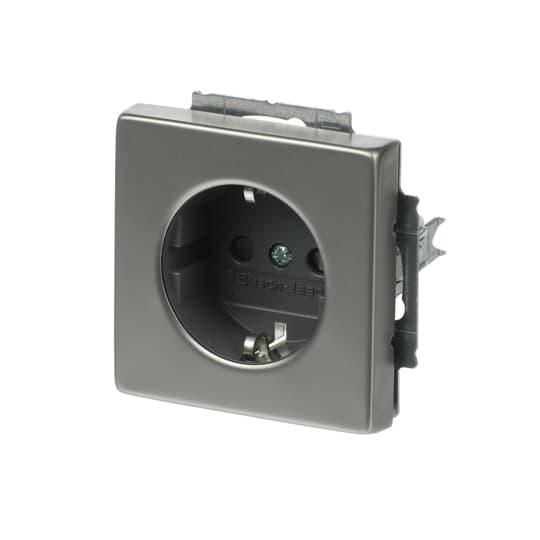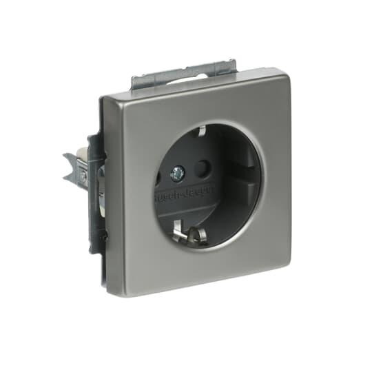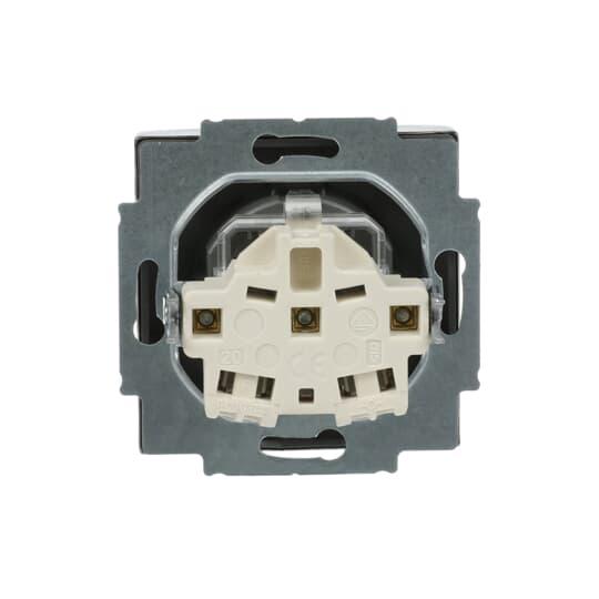 1-vägs jordad vägguttag med centrumplatta. Insatsen innehåller insticksplintar. Inga extra klämmor.