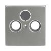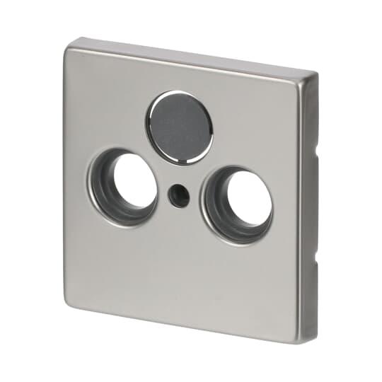 Centrumplatta för de vanligaste insatser för antennuttag som finns till salu. Sat-kopplingens öppning är stängd men kan öppnas på installationsplatsen. Lämpar sig för öppning planerad för 1-vägs apparat i täckram. Kan installeras inomhus i torra utrymmen. Materialet rostfritt stål. Ytan är blank och lätt att hålla ren. Rengöring med vanliga milda tvättmedel för hushåll. Användning av starka lösningsmedel bör undvikas.