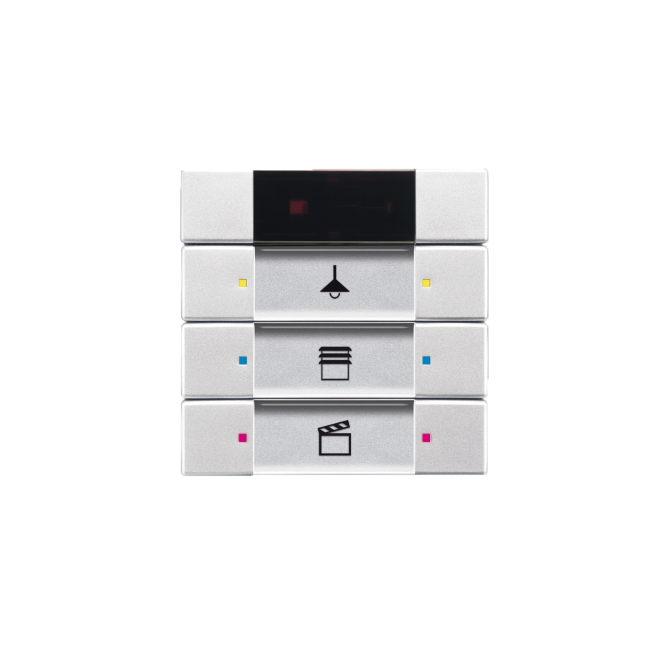 Multifunktionstryckknapp med textfält och LED och IR. 13 logiska block. Används med E1751115 eller med 6120/13 E1720113.