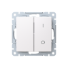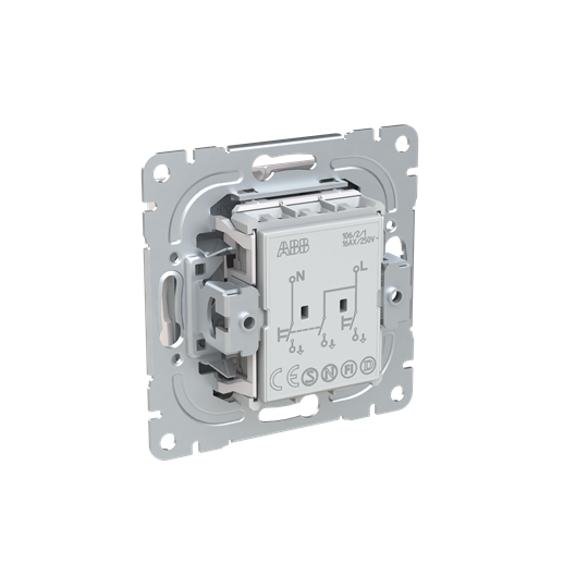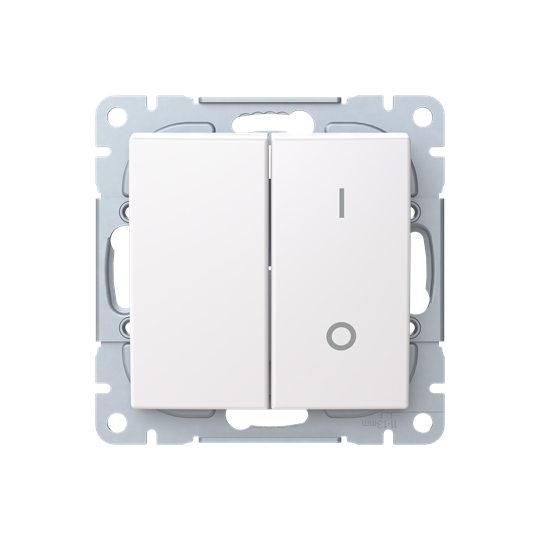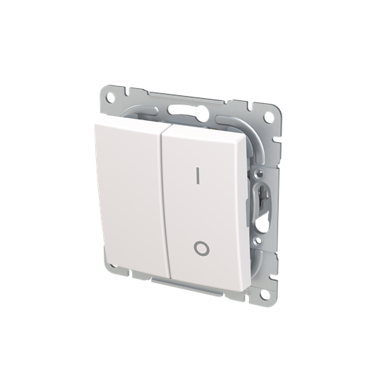 Strömställare SAGA 2+1-polig med snabbanslutning. Terminalerna är för max två stela ledningar. Produkten består av brytarinsats och vippa. Biocirkulär plast används i ram och 1-vippa.