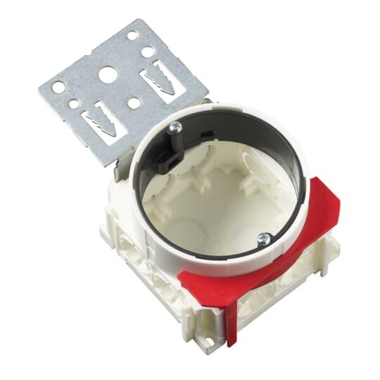 Apparatdosan är avsedd för installationer med flexibla rör, Det finns sex knockouts för 16/20 mm rör och två för 20 mm rör, I botten finns två knockouts för de nedre inloppen, Apparatdosan inkluderar en roterande, steglöst justerbar fästring med två låsvingar och två röda halvcirklar som möjliggör installation på skivor med en tjocklek på 12-39 mm, Minsta installationsdjup är 45 mm och totalhöjd 58-73 mm, Inklusive regelfäste, Tillverkad av halogenfritt material (IEC/61249-2-21) och uppfyller kraven för glödtrådstest enligt standarden IEC/EN60670: 2005 (850 °C),