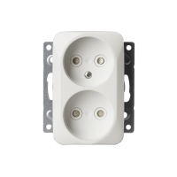 16A, 250V, 2-vägs vägguttagsinsats, snabbanslutning, 4-anslutningspunkter per ledare, inklusive centrumplatta. Infälld installation IP21. Täckram tillkommer.