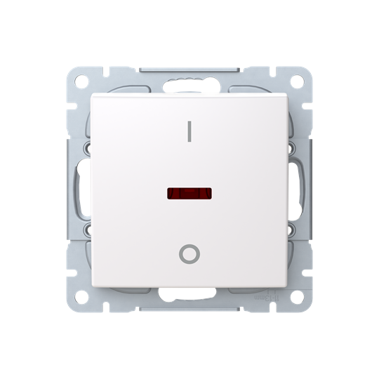 Strömställare SAGA 2-polig med snabbanslutning och vippa med clip-on-fäste. Terminalerna är för max två stela ledningar. Röd lins på strömbrytaren och lampa ingår.