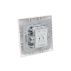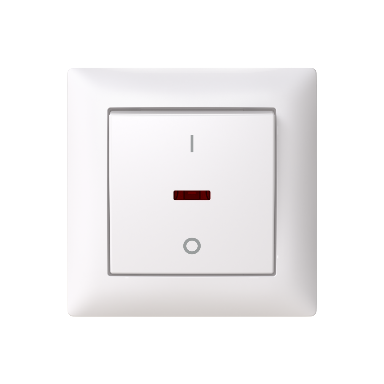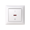 Strömställare SAGA 2-polig, med snabbanslutning och vippa med clip-on-fäste. Terminalerna är för max två stela ledningar. Röd lins på strömbrytaren, täckram och lampa ingår. Biocirkulär plast används i ramen.