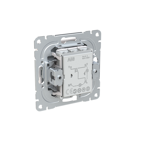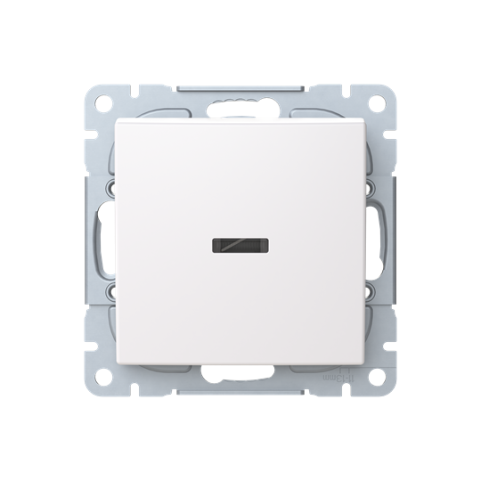 Tryckknapp SAGA med trappfunktion, med snabbanslutning. Terminalerna är för max två stela ledningar. Inklusive transparent lins, brytarinsats och vippa.
