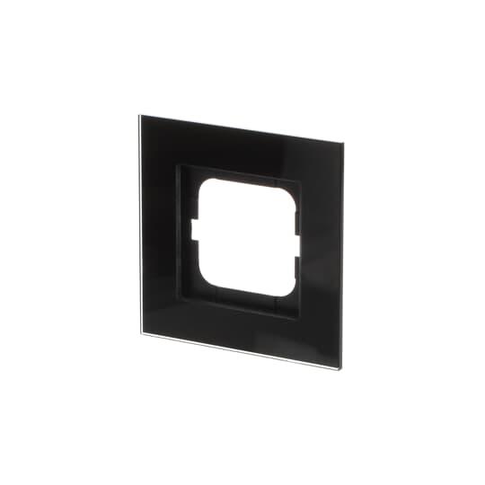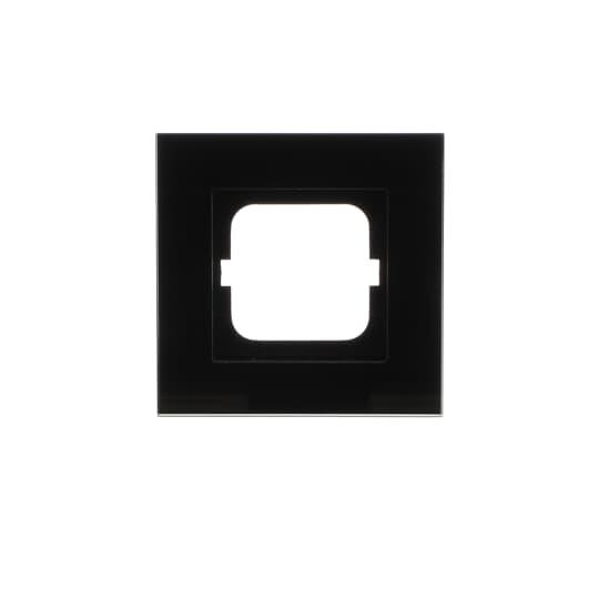 Täckram för infällt montage av 1-vägs armaturer med centrumplatta som exempelvis strömställarna. Kan installeras både lodrätt och vågrätt. Materialet glas. Rengöring med vanliga milda tvättmedel för hushåll. Användning av starka lösningsmedel bör undvikas.