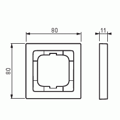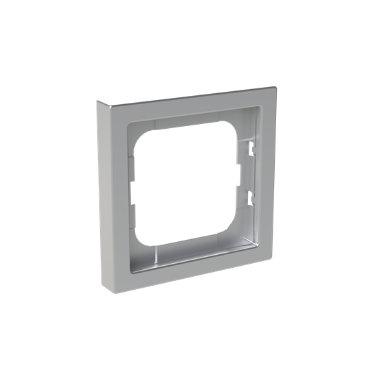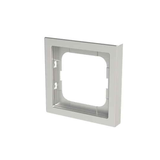 Täckram för infällt montage av 1-vägs armaturer med centrumplatta som exempelvis strömställare.Kan installeras både lodrätt och vågrätt. Materialet rostfritt stål. Ytan är blank och lätt att hålla ren. Rengöring med vanliga milda tvättmedel för hushåll. Användning av starka lösningsmedel bör undvikas.