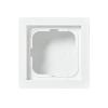 Förhöjningsramar Impressivo. Apparater för infällt montage kan normalt monteras utvändigt med hjälp av dessa utanpåliggande förhöjningsramar. Tänk på att kontrollera att ramens höjd rymmer den aktuella apparatinsatsen. Materialet är av en hållbar högkvalitativ plast. Ytan är matt. Rengöring med en mild, vanlig hushålls rengöringsmedel. Var försiktig när du rengör med ett kraftfullt lösningsmedel.