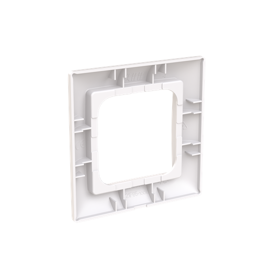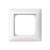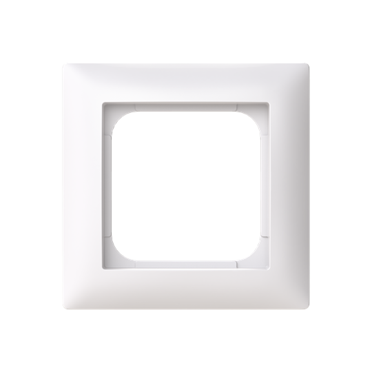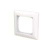 Infälld täckram SAGA för 1-facks tillbehör, till exempel strömbrytare. Ytan är blank och lätt att hålla ren, använd ett vanligt milt hushållsrengöringsmedel. Biocirkulär plast används i ramen.
