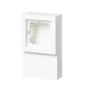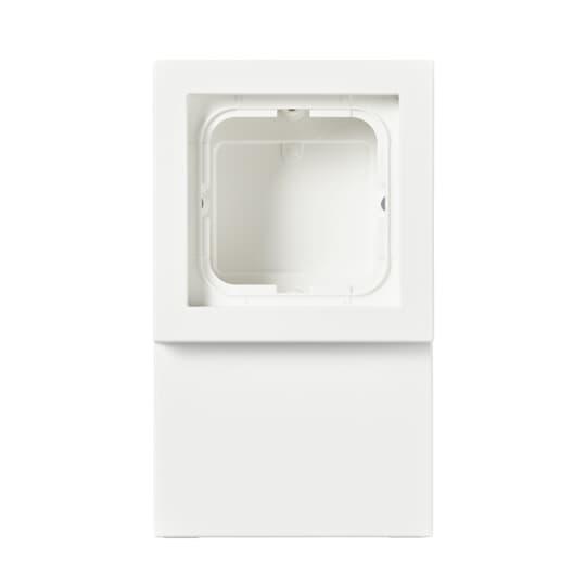 Sockeldosa för 1-vägsinsatser för infällt montage. Låddjupet räcker inte för elektroniska produkter, till exempel dimmer. Materialet är en hållbar plast av hög kvalitet. Ytan är blank och lätt att hålla ren. Rengöring med ett milt, standardtvättmedel. Var försiktig när du rengör med ett kraftfullt lösningsmedel.