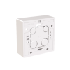 Utanpåliggande monteringsdosa SAGA 1-fack med 85 mm bredd. Denna låda är låg, med en total höjd på 43 mm. Den är lämplig för enheter med maximalt installationsdjup på 26 mm. Enheten består av bottenplatta och överdel. Biocirkulär plast används i botten och centrumplattan.