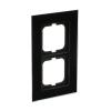 Täckram för infällt montage av 1-vägs armaturer med centrumplatta som exempelvis strömställarna. Kan installeras både lodrätt och vågrätt. Materialet glas. Rengöring med vanliga milda tvättmedel för hushåll. Användning av starka lösningsmedel bör undvikas.