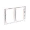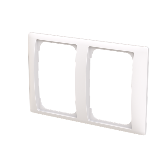 Täckram SAGA 100 mm, för två 2-vägsuttag. Lämplig för både horisontell och vertikal installation. Ytan är blank och lätt att hålla ren. Rengöring med ett vanligt, milt hushållsrengöringsmedel. Biocirkulär plast används i ramen.