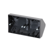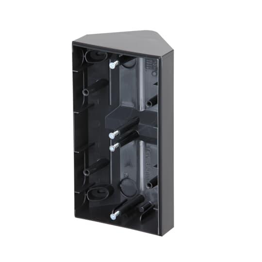 Hörnbox för ytmontage. För 2 Impressivo produkter för infällt montage. Används med 85 mm 2-facks täckram. I hörn-boxen kan man montera insatser som är 36mm djupa eller lägre.