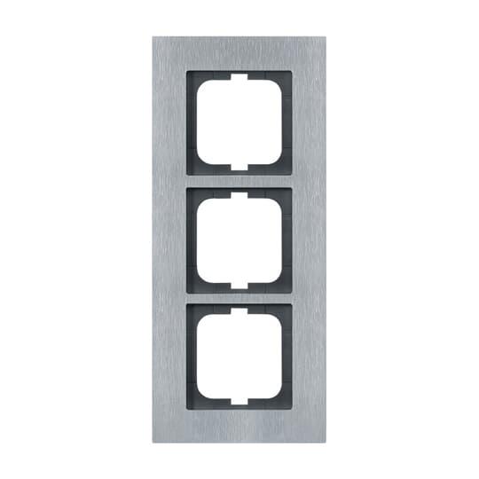 Täckram för infällt montage av 1-vägs armaturer med centrumplatta som exempelvis strömställarna. Kan installeras både lodrätt och vågrätt. Materialet rostfritt stål. Rengöring med vanliga milda tvättmedel för hushåll. Användning av starka lösningsmedel bör undvikas.