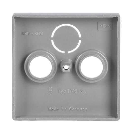 Centrumplatta för de vanligaste insatser för antennuttag som finns till salu. Sat-kopplingens öppning är stängd men kan öppnas på installationsplatsen. Lämpar sig för öppning planerad för 1-vägs apparat i täckram samt med hjälp av adaptern 2519-xx i öppning planerad för 2-vägs apparat. Kan installeras inomhus i torra utrymmen. Vid infällt montage i fuktiga utrymmen eller ute bör man ta i beaktande påfrestningar som de yttre förhållandena orsakar på produkten. Skyddet kan förbättras med hjälp av tätningsserie och kapsellock. Tillverkad av högklassigt och hållbart plastmaterial. Ytan är blank och lätt att hålla ren. Rengöring med vanliga milda tvättmedel för hushåll. Användning av starka lösningsmedel bör undvikas.