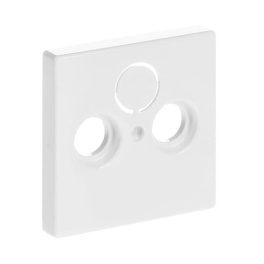 Centrumplatta för de vanligaste insatser för antennuttag som finns till salu. Sat-kopplingens öppning är stängd men kan öppnas på installationsplatsen. Lämpar sig för öppning planerad för 1-vägs apparat i täckram samt med hjälp av adaptern 2519-xx i öppning planerad för 2-vägs apparat. Kan installeras inomhus i torra utrymmen. Vid infällt montage i fuktiga utrymmen eller ute bör man ta i beaktande påfrestningar som de yttre förhållandena orsakar på produkten. Skyddet kan förbättras med hjälp av tätningsserie och kapsellock. Tillverkad av högklassigt och hållbart plastmaterial. Ytan är blank och lätt att hålla ren. Rengöring med vanliga milda tvättmedel för hushåll. Användning av starka lösningsmedel bör undvikas.