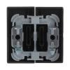 2-vägs vippa för strömställarinsatser med 2-vippa. Lämpar sig för öppning planerad för 1-vägs apparat i täckram. Kan installeras inomhus i torra utrymmen. Materialet målad plast. Ytan är blank och lätt att hålla ren. Rengöring med vanliga milda tvättmedel för hushåll. Användning av starka lösningsmedel bör undvikas.
