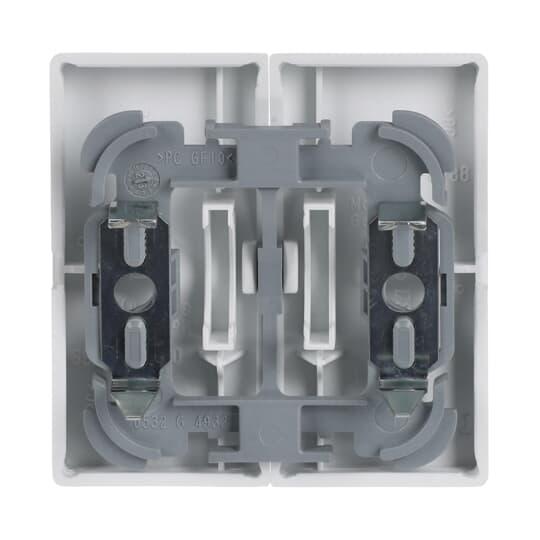 1-vägs vippa för alla strömställarinsatser med 1-vippa. Lämpar sig för öppning planerad för 1-vägs apparat i täckram. Kan installeras inomhus i torra utrymmen. Materialet målad plast. Ytan är blank och lätt att hålla ren. Rengöring med vanliga milda tvättmedel för hushåll. Användning av starka lösningsmedel bör undvikas.