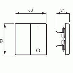 1-vägs vippa för alla strömställarinsatser med 1-vippa. Lämpar sig för öppning planerad för 1-vägs apparat i täckram. Kan installeras inomhus i torra utrymmen. Materialet målad plast. Ytan är blank och lätt att hålla ren. Rengöring med vanliga milda tvättmedel för hushåll. Användning av starka lösningsmedel bör undvikas.