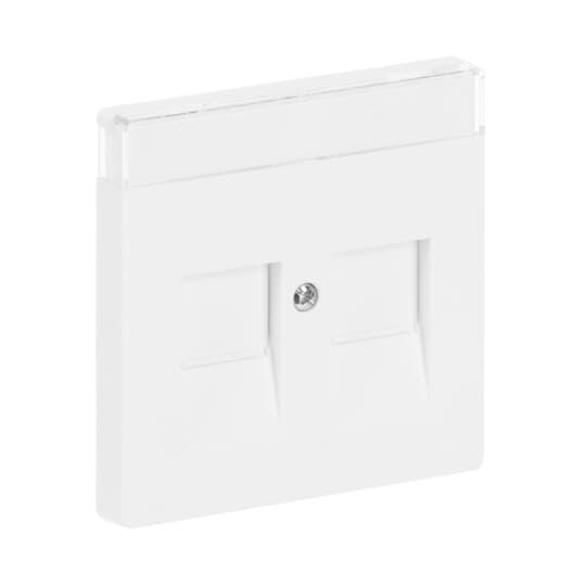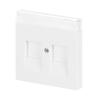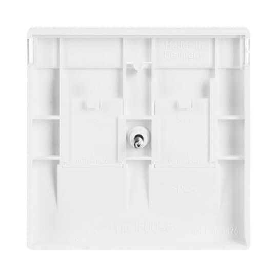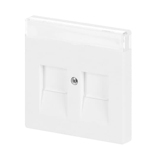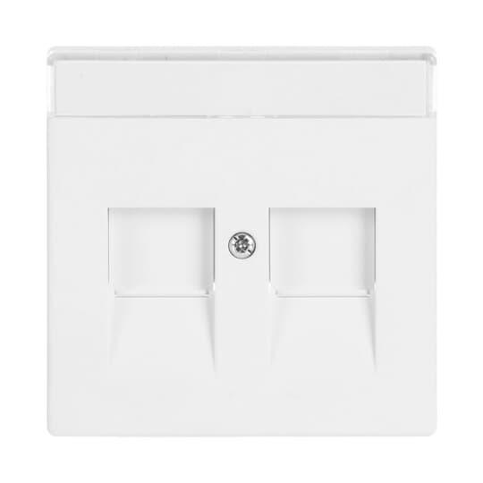 Centrumplatta för RJ45-dosans insatser 1800.x. Lämpar sig för öppning planerad för 1-vägs apparat i täckram. Kan installeras inomhus i torra utrymmen. Materialet målad plast. Rengöring med vanliga milda tvättmedel för hushåll. Användning av starka lösningsmedel bör undvikas.