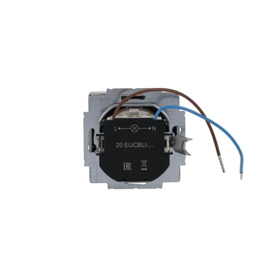 16A, 250V jordat 1-vägsuttag. Två anslutningspunkter per ledare. Använd ledare EK eller FK. Det finns inga X-plitar. En vit LED-lampa ( 230V / 2,5mA / 0,6VA) är integrerad i vägguttagets underkant och fungerar som nattbelysning. LED-lampan kan styras separat eller kan anslutas till uttagsterminalerna L och N som då lyser kontinuerligt.