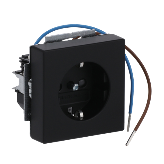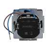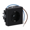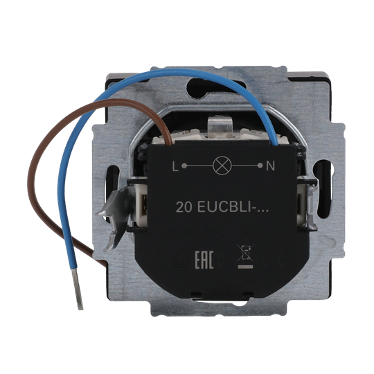 16A, 250V jordat 1-vägsuttag. Två anslutningspunkter per ledare. Använd ledare EK eller FK. Det finns inga X-plitar. En vit LED-lampa ( 230V / 2,5mA / 0,6VA) är integrerad i vägguttagets underkant och fungerar som nattbelysning. LED-lampan kan styras separat eller kan anslutas till uttagsterminalerna L och N som då lyser kontinuerligt.