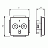 Potentialutjämningsstickkontakt, 2-vägs. Snabbkoppling för 1x6 och 4 x 2,5 ledningar. Lämpar sig för öppning planerad för 1-vägs apparat i täckram samt med hjälp av adaptern 2519-xx i öppning planerad för 2-vägs apparat. Tillverkad av högklassigt och hållbart plastmaterial. Ytan är blank och lätt att hålla ren. Rengöring med vanliga milda tvättmedel för hushåll. Användning av starka lösningsmedel bör undvikas.