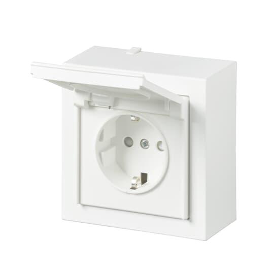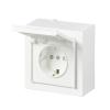 Komplett kapslat 1-vägs vägguttag IP44 med lock och med jord, För utanpåliggande montage. Snabbanslutningar. Plats för 4 kablar per anslutningar. Inga x-plintar.