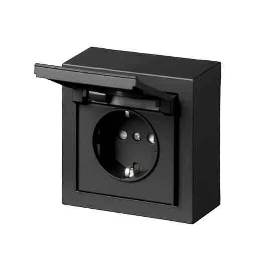Komplett kapslat 1-vägs vägguttag IP44 med lock och med jord, För utanpåliggande montage. Snabbanslutningar. Plats för 4 kablar per anslutningar. Inga x-plintar.