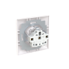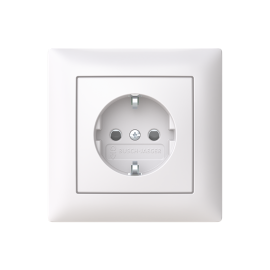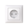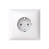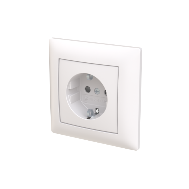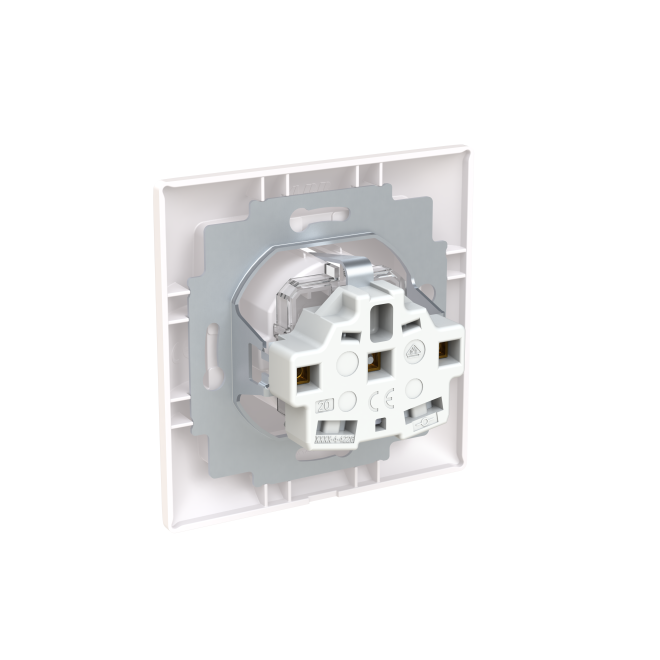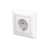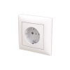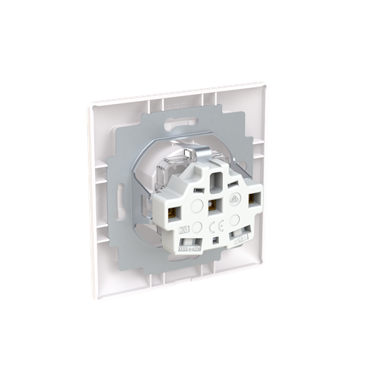 Vägguttag SAGA, 1-vägs, jordat med snabbanslutning. För infällt montage, levereras med ram. Det finns terminaler för varje kontakt i uttaget. Inga X-terminaler. Terminalerna är för max två stela ledningar. Biocirkulär plast används i ramen.