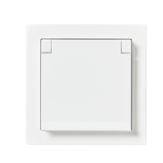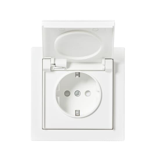 1-vägs SCHUKO vägguttag komplett med ram. För infällt montage. Försedd med lock. Snabbanslutningar, 2 X-plitar ingår. Alla detaljer ingår, inklusive tätningsdamask (2464) som ger IP44 vid infällt montage.