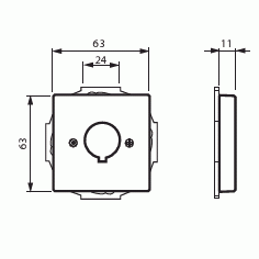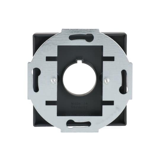 Centrumplatta med ett runt 22,5 mm:s hål utrustat med ett inhugg som förhindrar rotation. Används för fastsättning av olika apparater. Lämpar sig för öppning planerad för 1-vägs apparat i täckram. Kan installeras inomhus i torra utrymmen. Tillverkad av högklassigt och hållbart plastmaterial. Rengöring med vanliga milda tvättmedel för hushåll. Användning av starka lösningsmedel bör undvikas.