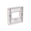 Centrumplatta SAGA för USB, VGA och HDMI-insatser. Ytan är blank och lätt att hålla ren. Rengöring med ett vanligt, milt hushållsrengöringsmedel.