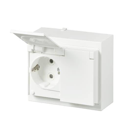 Komplett kapslat 2-vägs vägguttag IP44 med lock. Plats för 4 kablar per anslutningar. Inga x-plintar.
