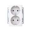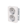 2-vägs infällt vägguttag SAGA, multipack. Uttag med plintar för varje kontakt på uttaget för max fyra styva ledningar. Inga X-terminaler. Beröringsskyddad uttagsinsats utan täckplåt. Biocirkulär plast används i centrumplattan.