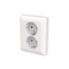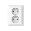 2-vägs infällt vägguttag SAGA, multipack. Uttag med plintar för varje kontakt på uttaget för max fyra stela ledningar. Inga X-terminaler. Beröringsskyddad uttagsinsats utan täckplåt. Biocirkulär plast används i mittplattan.