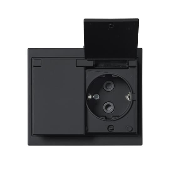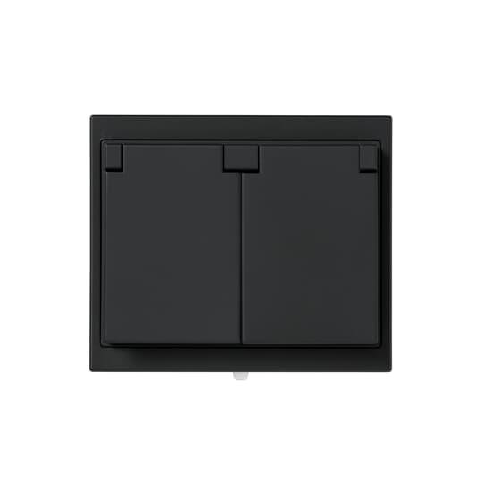 2-vägs SCHUKO vägguttag komplett. För infällt montage. Med snabbanslutning. Inga x-plintar. Försedd med lock. Plats för 4 ledare per anslutning. Max area 2,5 mm². Alla detaljer ingår, inklusive tätningsdamask (2464) som ger IP44 vid infällt montage.