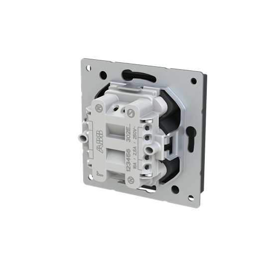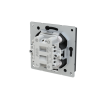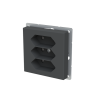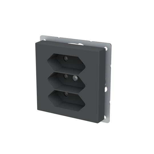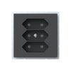 3-vägs Euro-uttag insats med centrumplatta. Det finns anslutning har plats för max 4 ledare. Samt 2 X-terminaler för 2-ledare vardera. Uttagsinsatsen är pet-skyddad även utan centrumplatta. 3x2,5 A, 250 V. Komplettera med ram.