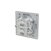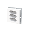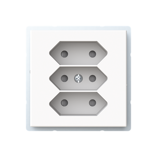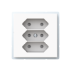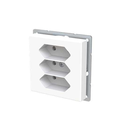 3-vägs Euro-uttag insats med centrumplatta. Det finns anslutning har plats för max 4 ledare. Samt 2 X-terminaler för 2-ledare vardera. Uttagsinsatsen är pet-skyddad även utan centrumplatta. 3x2,5 A, 250 V. Komplettera med ram.