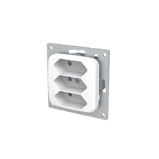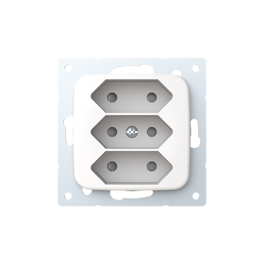 Vägguttagets petskydd sitter i insatsen vilket gör uttaget beröringsskyddat även utan centrumplattan. 3x2,5 A, 250 V.