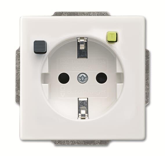 Vägguttag, 1-vägs infällt med jordfelsbrytare, 30mA IP21 vit