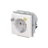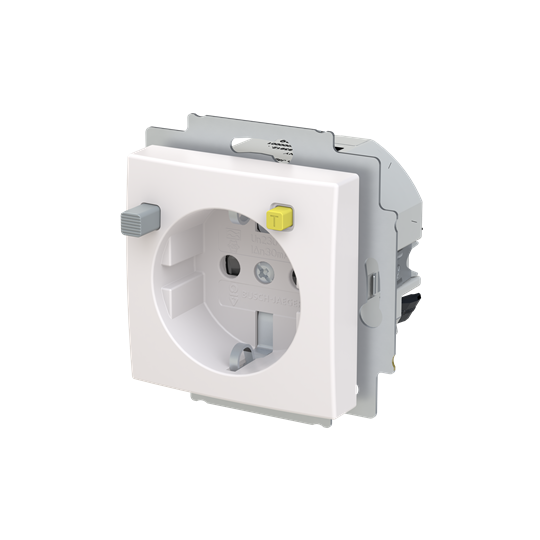Vägguttag SAGA, 1-vägs jordat med jordfelsbrytare. För infällt montage. Nominell spänning: 230 Vac (50/60 Hz). Nominell ström: 16A. Nominell felström: 30mA. Omgivningstemperatur: -25°C till +40°C. Skyddsklass: IP20-uttaget är försett med svart knapp för till- och frånslag och en gul knapp för test. Centrumplatta SAGA medföljer.