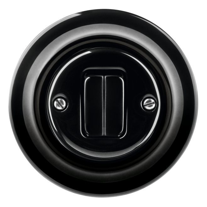 Strömställare D-TRAPP 2-vippor Komplett med täckram, Svart porslin, DUBBEL TRAPP med vippor, utan klor