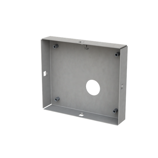Infälld installationsdosa i metall för svarsapparat med display. Med infälld installation sticker enheten bara ut 7 mm från väggen jämfört med 24 mm vid utanpåliggande installation.