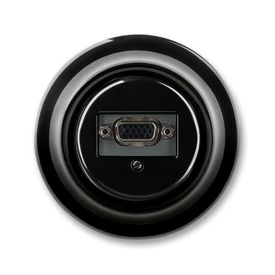 VGA-uttag 1xVGA Komplett med täckram, Svart porslin, utan klor