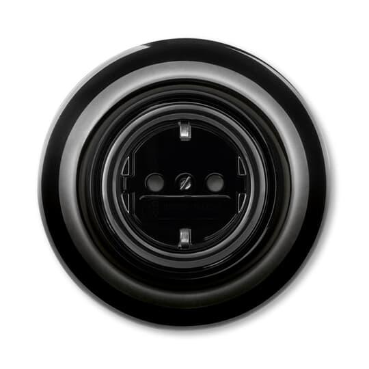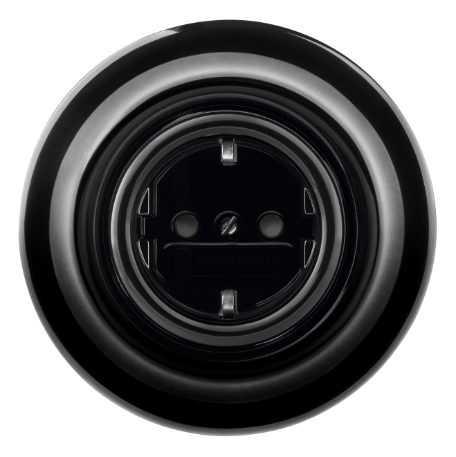 Vägguttag 1-vägs SCHUKO Komplett med täckram. Svart porslin, med petskydd, utan klor