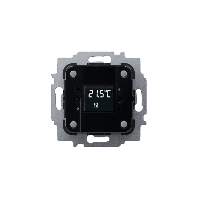 Kontrollelement med rumstermostat-funktion för att trigga uppvärmning, ventilation och fan-coil ställdon. För styrning av de vanligaste ställdonen på marknaden. För att montage ihop med täckplattan 1701100 (vit), 1701101 (antracit) eller 1701102 (aluminium) . Med visning av bör-temperaturvärde på display. Med master/slav konfigurering och driftläge för baslast. Bussen kan anslutas via medföljande kopplingsplint.