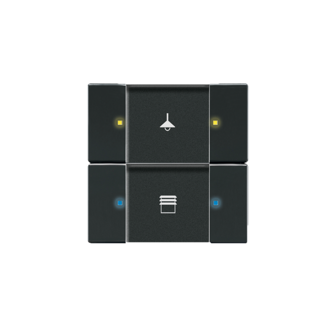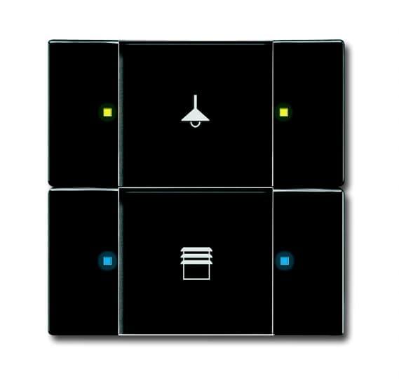 Multifunktionstryckknapp med textfält och LEDdioder. 9 logiska villkor i 5 st olika block. Används med E1751115 eller med 6120/13 E1750113.