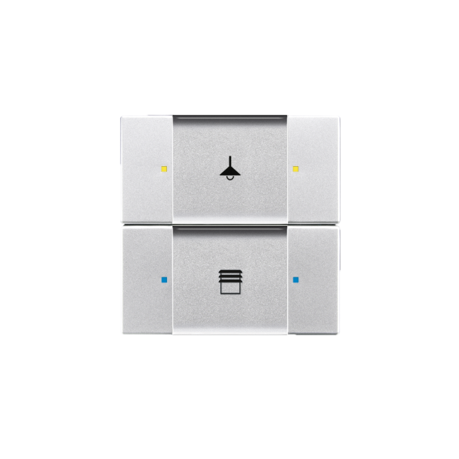 Multifunktionstryckknapp med textfält och LEDdioder. 9 logiska villkor i 5 st olika block. Används med E1751115 eller med 6120/13 E1750113.